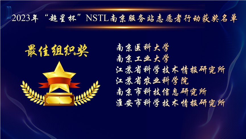 会上还对在“2023年NSTL南京服务站志愿者行动”中获得最佳组织奖的单位进行了表彰,我院荣获最佳组织奖。