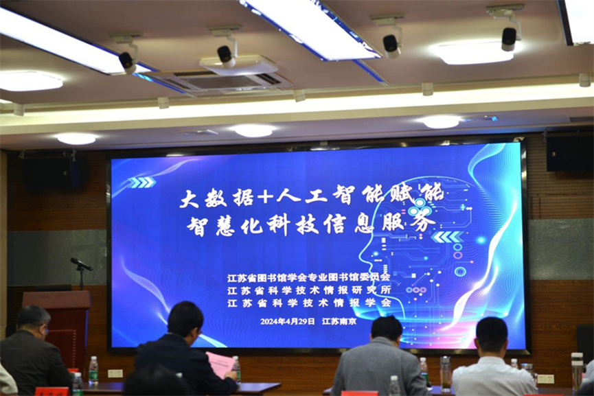 4月29日上午,由江苏省图书馆学会专业图书馆委员会、江苏省科学技术情报研究所、江苏省科学技术情报学会共同主办的“大数据+人工智能赋能智慧化科技信息服务”研讨会在南京召开。南京图书馆馆长、江苏省图书馆学会常务副理事长陈军,江苏省科学技术情报研究所党委书记、所长李敏出席会议并致辞。会议由江苏省科学技术情报研究所副所长、江苏省图书馆学会副理事长周晓明主持,江苏省科学技术情报研究所李克贵副所长、马永浩副所长以及来自信息(情报)服务机构、企业和科研院所的150余位代表参加会议。我院图书馆馆长戴红君携馆员一行2人参加会议。